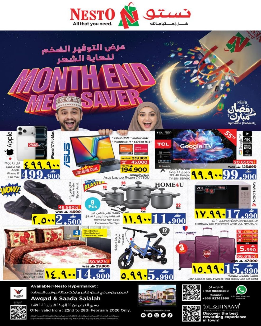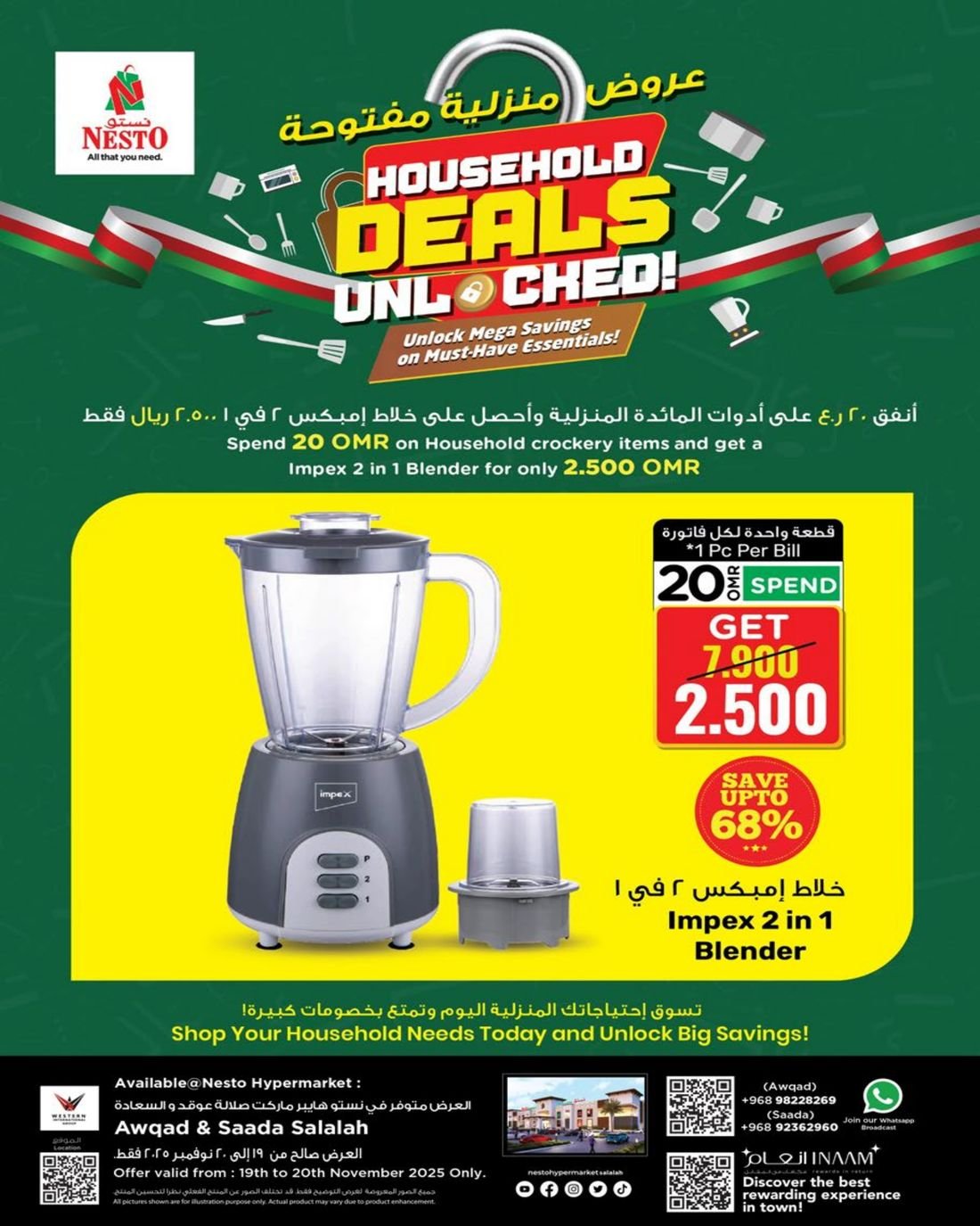 العروض متوفرة في نستو هايبر ماركت صلالة في فروع عوقد والسعادة.