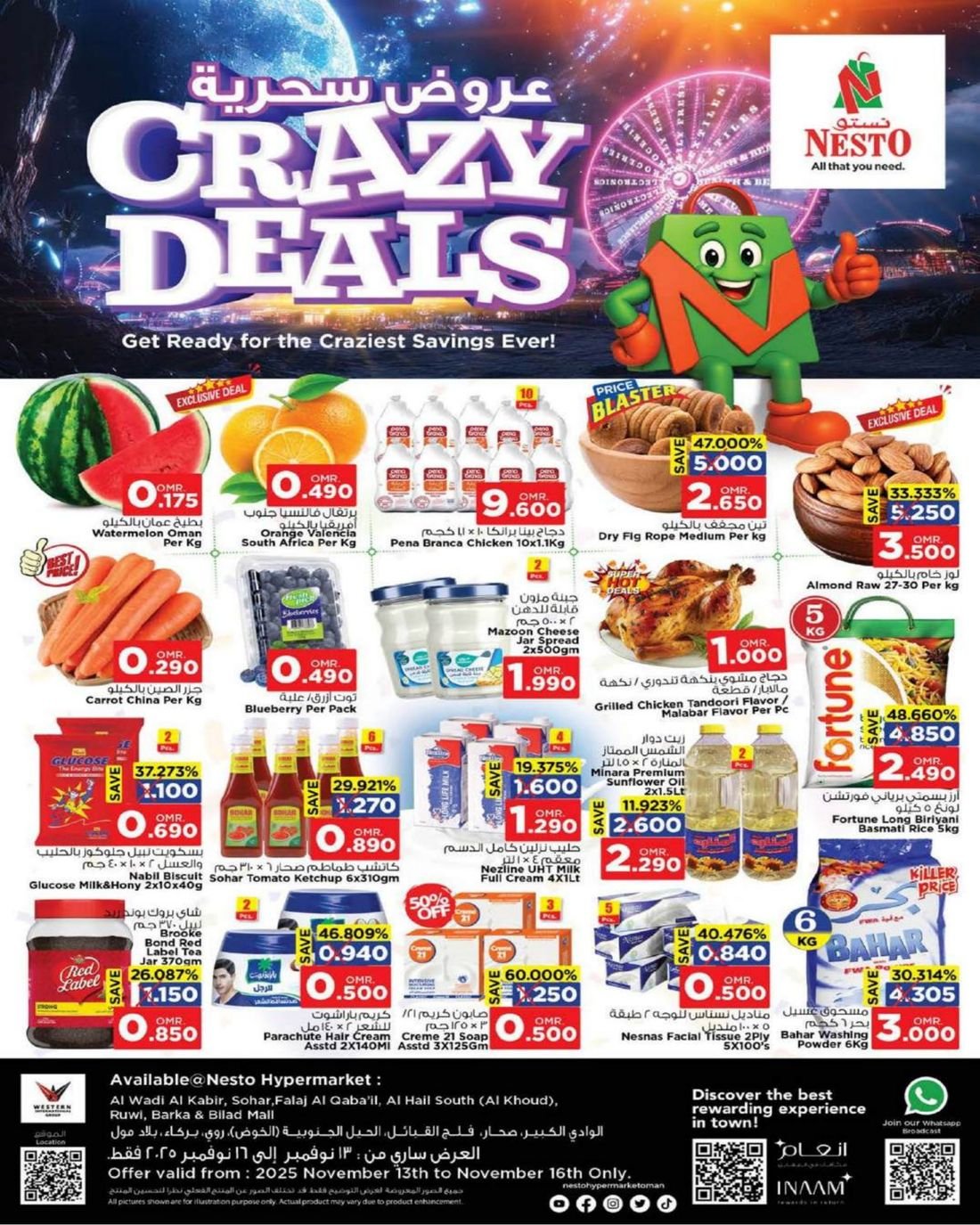 يقدم نستو المعبيلة وروي والخوض ووادي الكبير وصحار وبركاء وفلج القبائل عروض لوازم المنزل ، تسوق العديد من المواد الغذائية والمنتجات الطازجة وبإسعار مخفضة ،لاتدعو الفرصة تفوتكم وبادروا بالتوجه إلى نستو عمان .