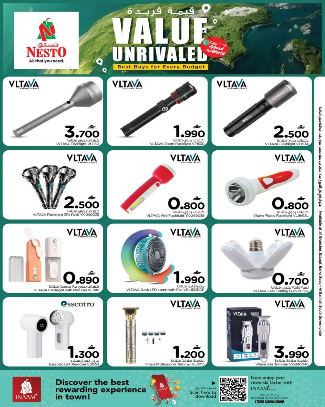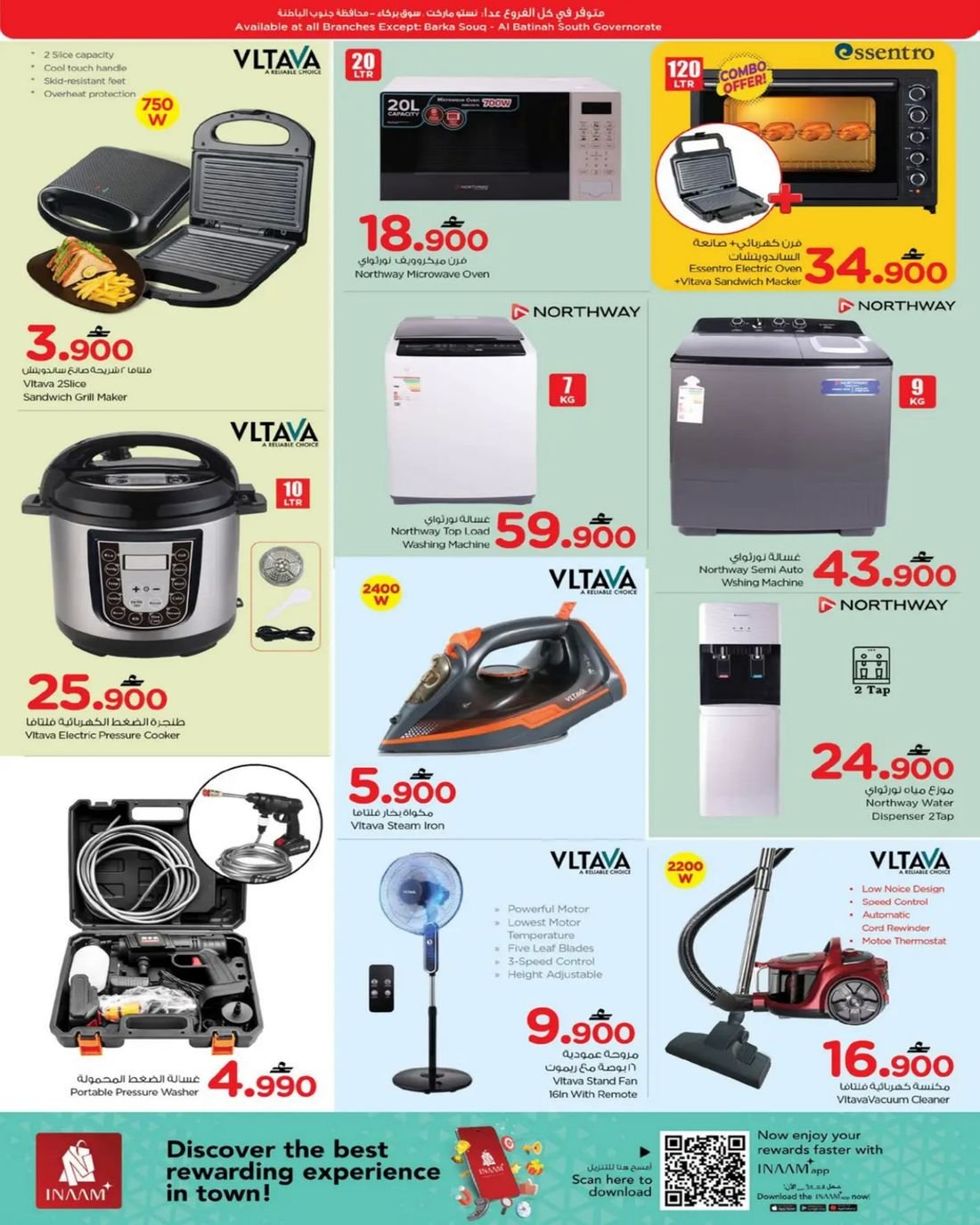 تسري تخفيضات نستو هايبر ماركت في فروع مسقط المعبيلة ووادي الكبير والحيل الجنوبية وروي والانصب والعامرات وصحم والمصنعة والسويق وفلج القبائل وصحار وبركاء .