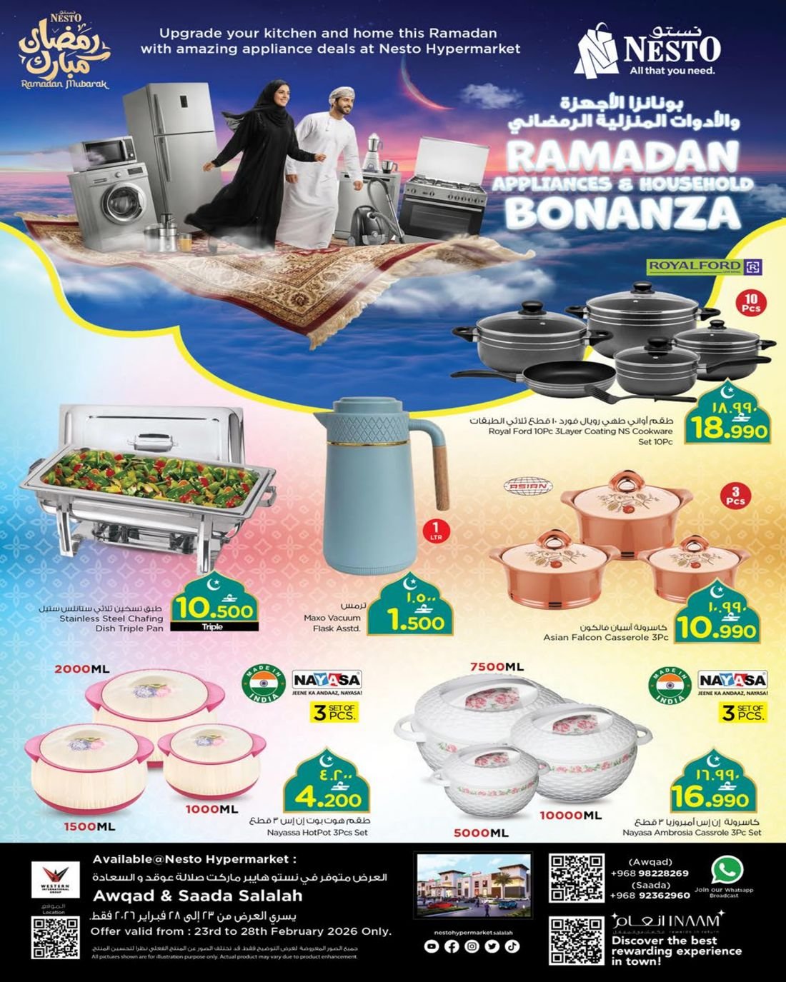 عروض الاواني والاجهزة المنزلية من نستو هايبر ماركت صلالة ، تسوق العديد من لوازم منزلك المتنوعة ،لاتدعو الفرصة تفوتكم وبادروا بالتوجه إلى نستو صلالة .
