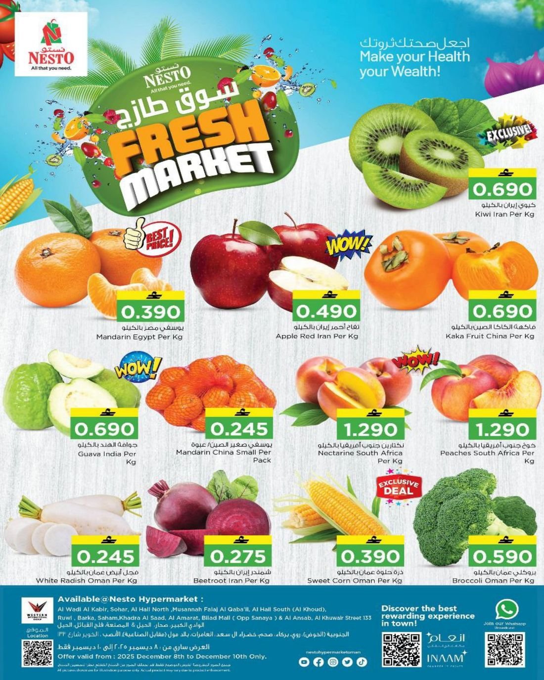 تسري عروض نستو هايبر ماركت المعبيلة وروي وادي الكبير والحيل والخوير والعامرات والمصنعة وصحار وفلج القبائل وصحم والسويق وبركاء .