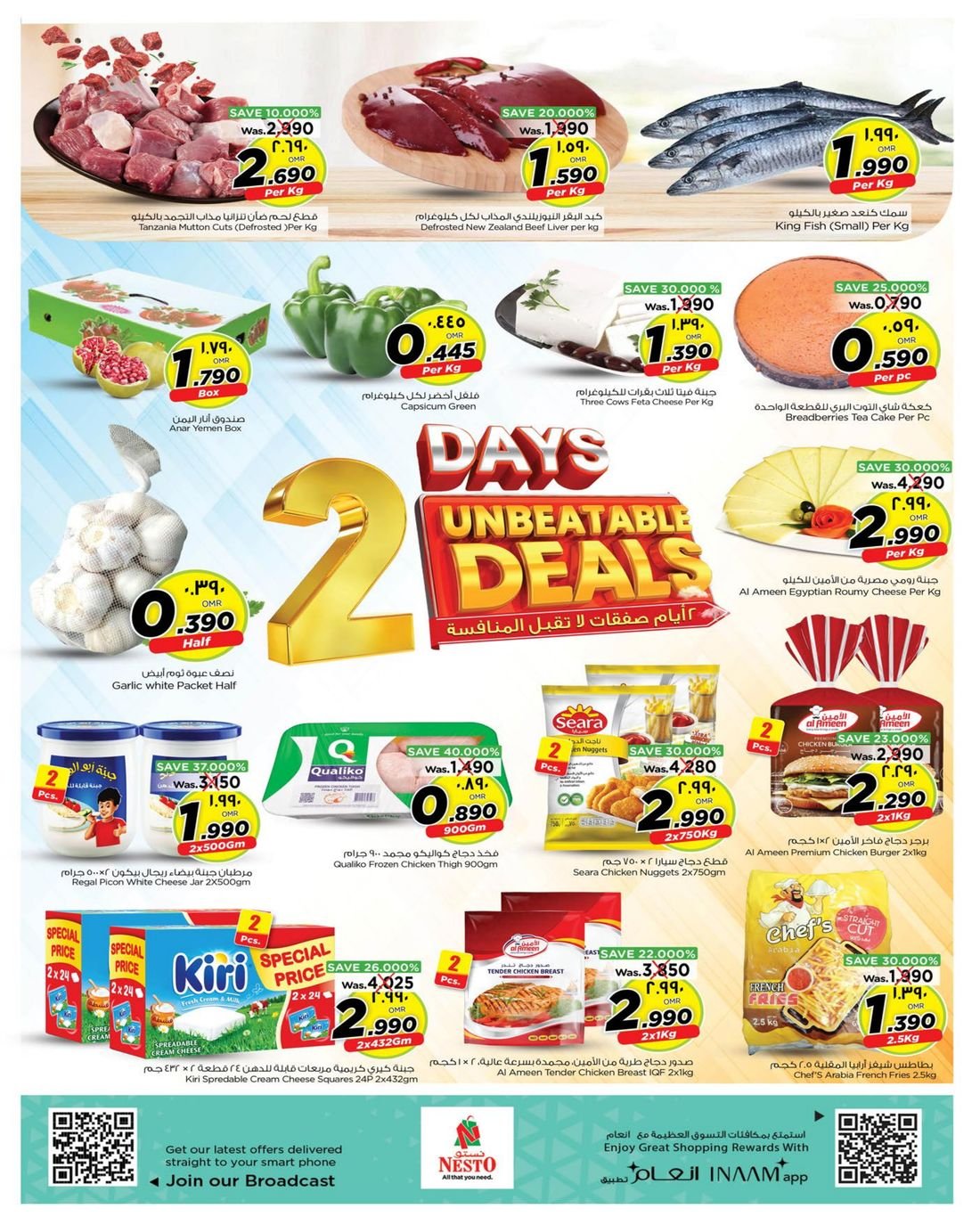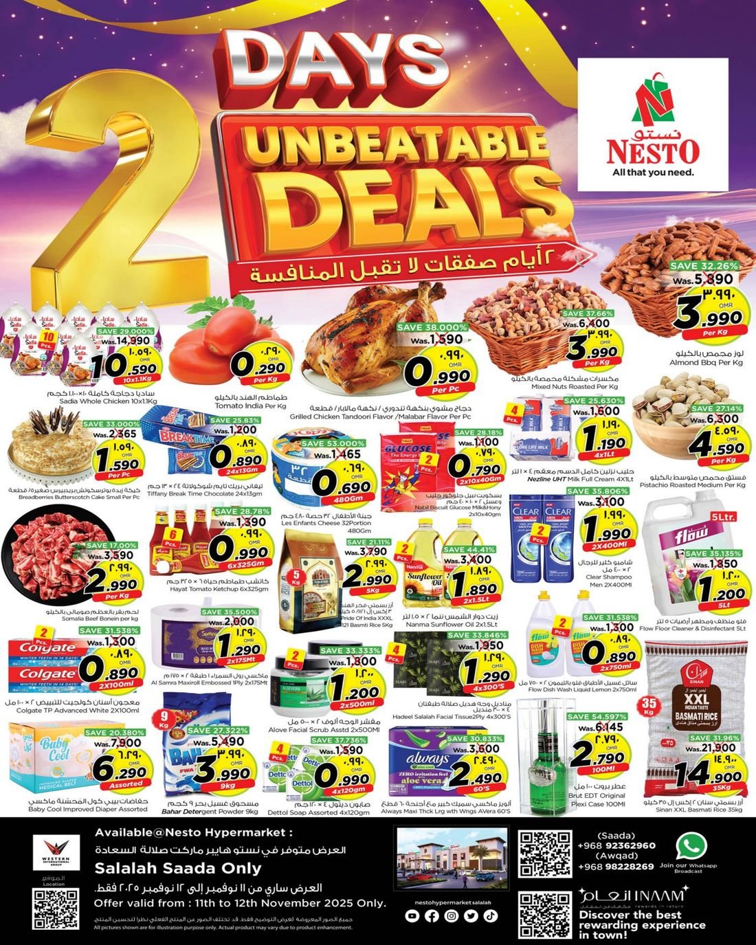 العرض متوفر في نستو هايبر ماركت صلالة فرع السعادة فقط .