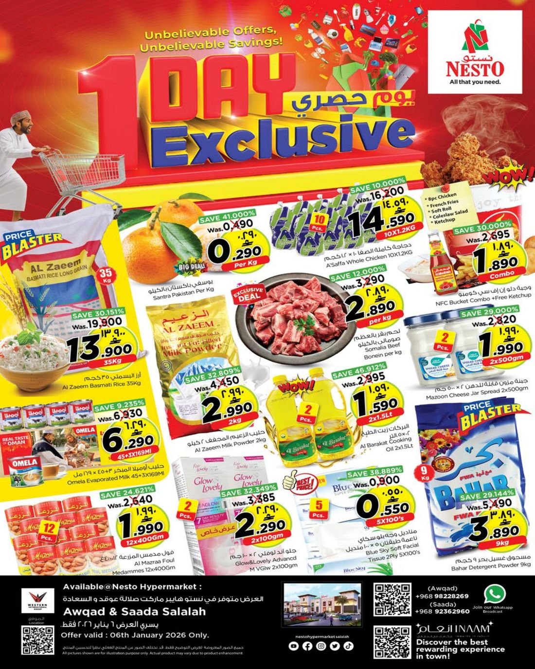 العروض متوفرة في نستو هايبر ماركت صلالة فروع عوقد والسعادة.