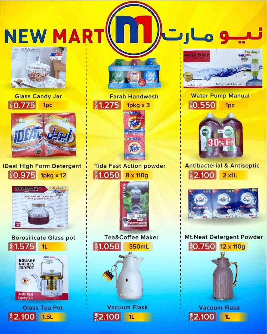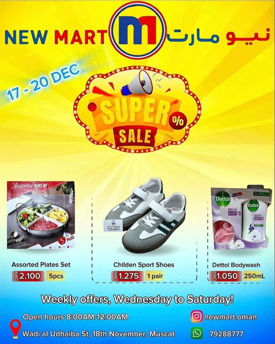 العروض متوفرة في نيو مارت فرع مسقط العذيبة مقابل إشارات شارع 18 نوفمبر .
