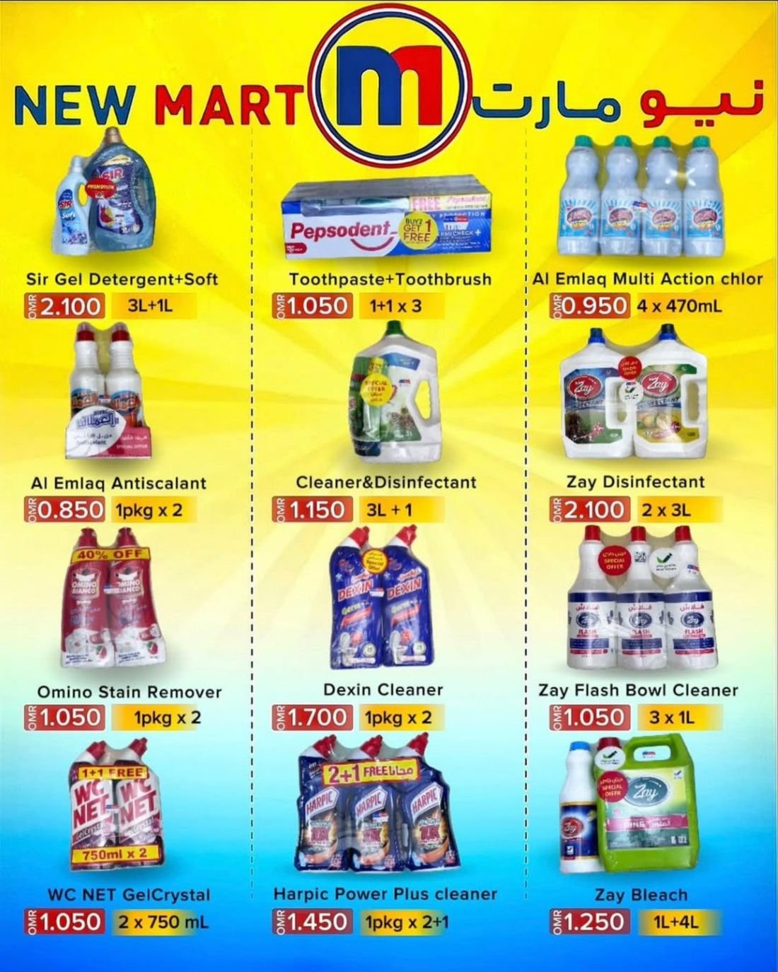اكتشفوا عروض نيو مارت المتنوعة في فرع مسقط العذيبة على مجموعة واسعة من المنظفات الفعالة للتنظيف اليومي! تسوقوا الان بخصومات مميزة على مساحات وأسطح المنزل مع منظفات متعددة الاستخدامات ومواد تلميع لامعة.