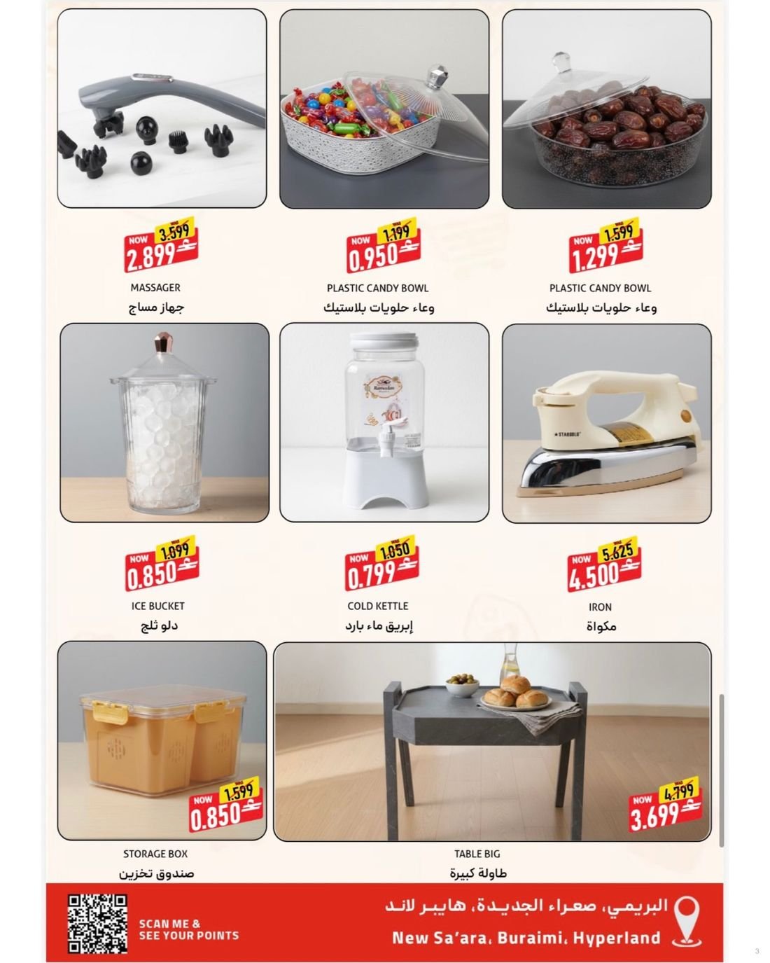 منتجاته تشمل الملابس (قسم كبير تحت 500 بيسة)، الأحذية، الأجهزة الإلكترونية، البقالة، والأدوات المنزلية.