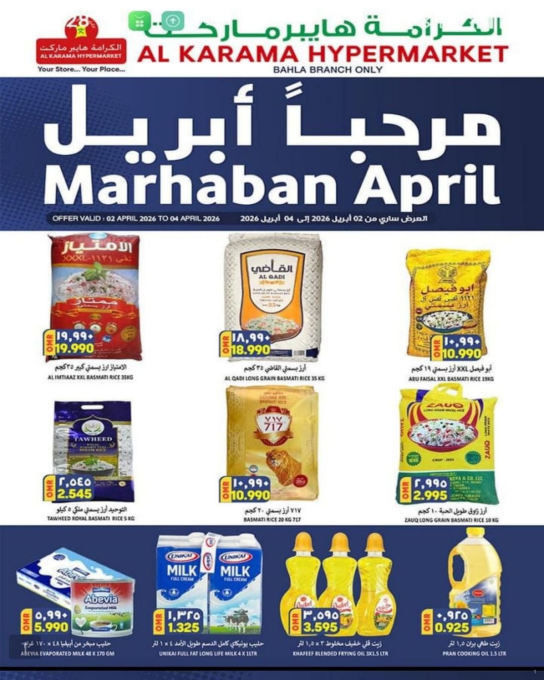 العروض متوفرة في فرع الكرامة هايبر ماركت بهلاء فقط .