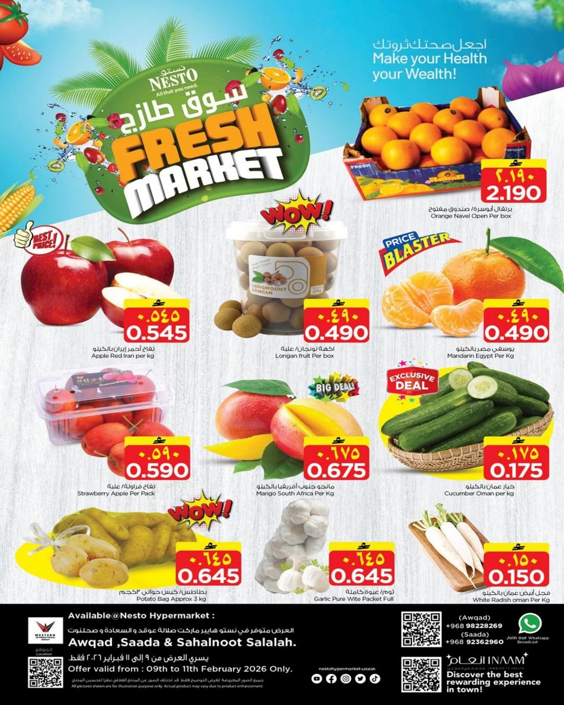 عروض الغذائيات والمنتجات الطازجة من نستو هايبر ماركت عمان فرع ولاية صلالة ، تسوق الان ضمن التخفيضات الاسبوعية في نستو عوقد والسعادة افضل المنتجات الغذائية والطازجة .