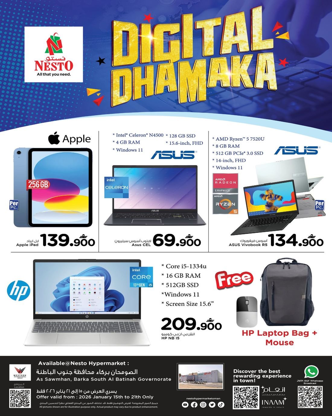 عروض اللابتوبات والاجهزة اللوحية المتنوعة من نستو هايبر ماركت بركاء ضمن تخفيضات جديدة ، تسوق الآن العديد من أنواع اللابتوبات المتنوعة وبأسعار مخفضة،لاتدعو الفرصة تفوتكم وبادروا بالتوجه إلى نستو بركاء.