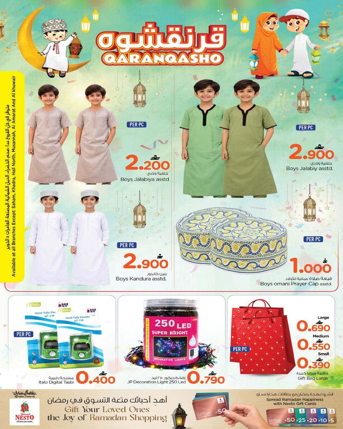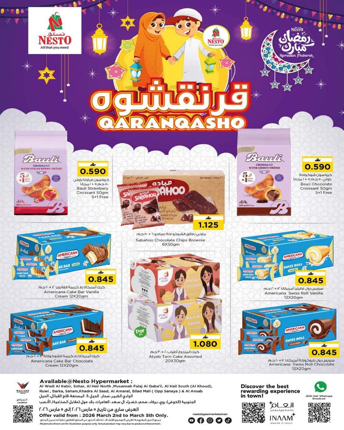 يقدم نستو المعبيلة وروي والخوض ووادي الكبير وصحار وبركاء وفلج القبائل عروض لوازم المنزل ، تسوق العديد من المواد الغذائية والمنتجات الطازجة وبإسعار مخفضة ،لاتدعو الفرصة تفوتكم وبادروا بالتوجه إلى نستو عمان .