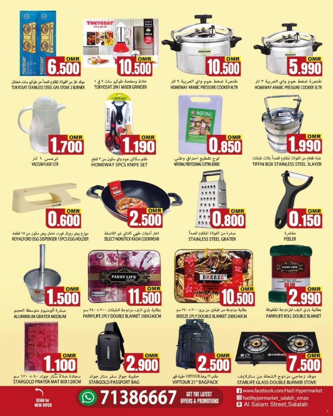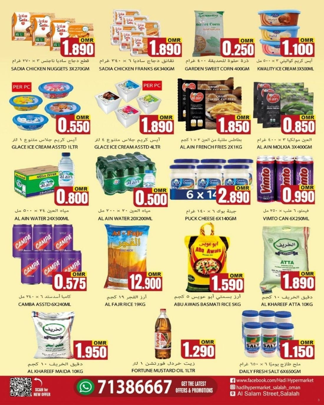 عروض الغذائيات ولوازم المنزل من هادي هايبر ماركت ولاية صلالة على مجموعة من الغذائيات ولوازم المنزل وباسعار مناسبة ، زوروا الان هادي هايبر ماركت صلالة واستفيدوا من العروض .