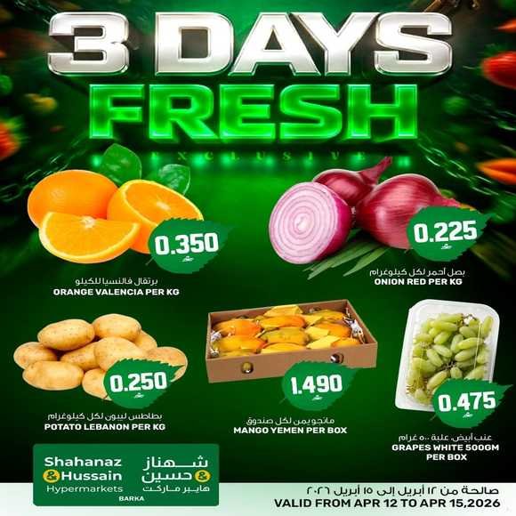 عروض شهناز وحسين هايبر ماركت بركاء من 12 حتى 15 ابريل