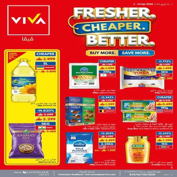عروض فيفا سوبر ماركت المتنوعة من 1 حتى 14 ابريل
