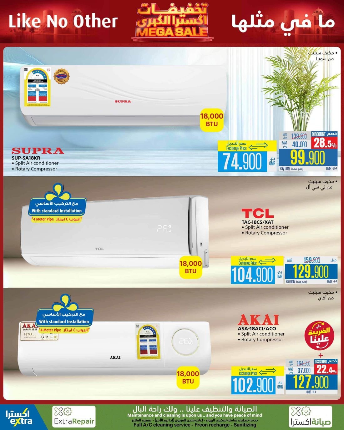 إذا كنت تبحث عن تحسين منزلك بأحدث الأجهزة المنزلية الذكية، فإن اكسترا تقدم عروضاً مميزة على المكيفات والثلاجات والغسالات والمكانس الكهربائية والمزيد. هذه العروض تضمن لك توفير المال مع الاستفادة من الأجهزة التي تجعل حياتك اليومية أكثر راحة وسهولة.