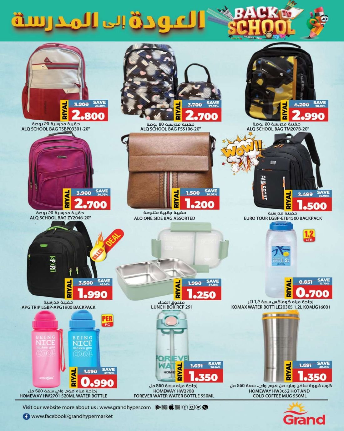 عروض القرطاسية والحقائب ولوازم الدراسة المتنوعة من جراند هايبر ماركت عمان ، تخفيضات جراند عمان تشمل العديد من حقائب المدرسة والقرطاسية وملابس المدارس إضافة إلى بعض لوازم وحاجيات المنزل وبأسعار مخفضة والمزيد من العروض بانتظاركم .