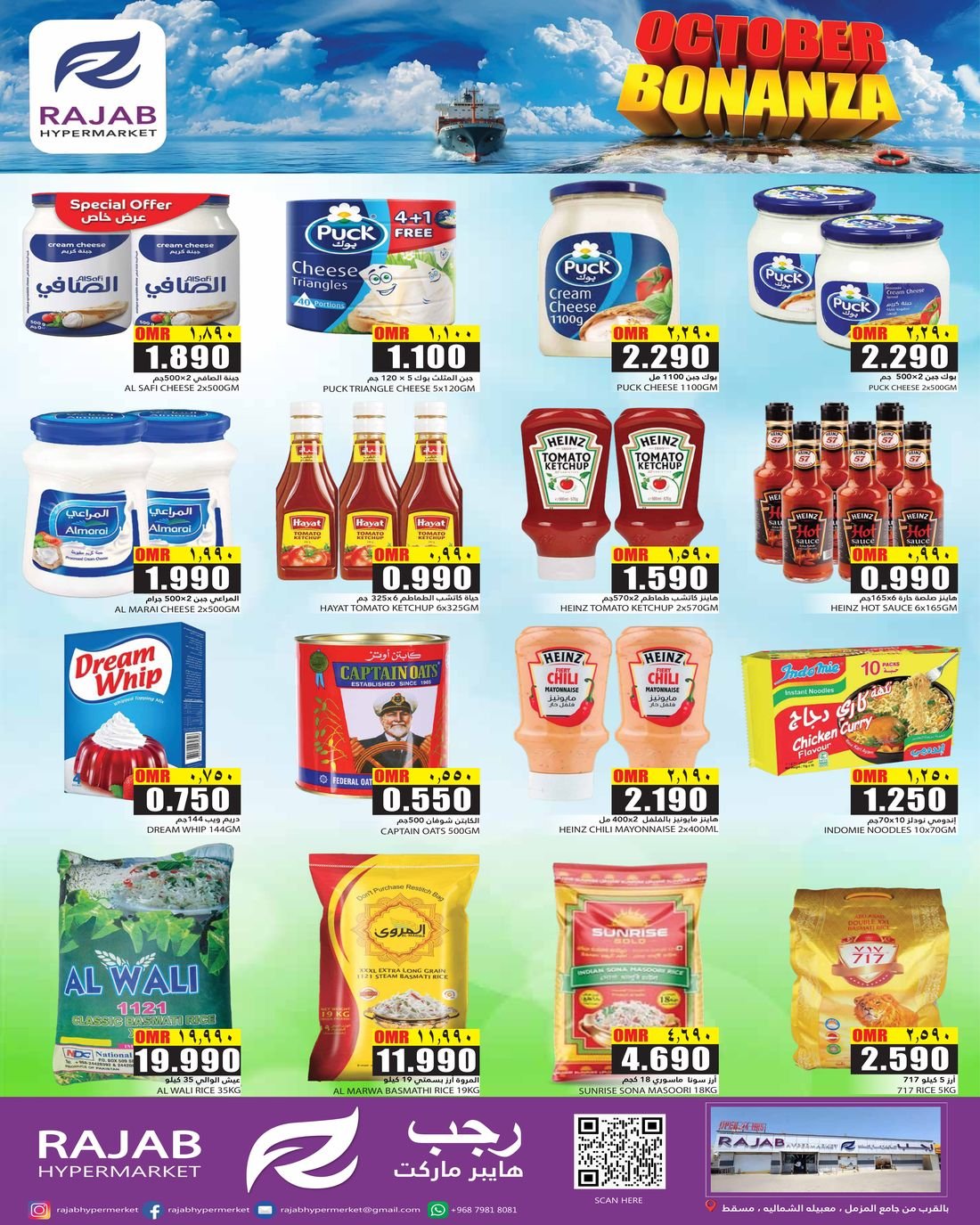 عروض الغذائيات ولوازم المنزل من رجب هايبر ماركت مسقط المعبيلة تخفيضات على العديد من المواد الغذائية إضافة الى بعض لوازم وحاجيات المنزل وباسعار مناسبة من رجب هايبر ماركت المعبيلة.