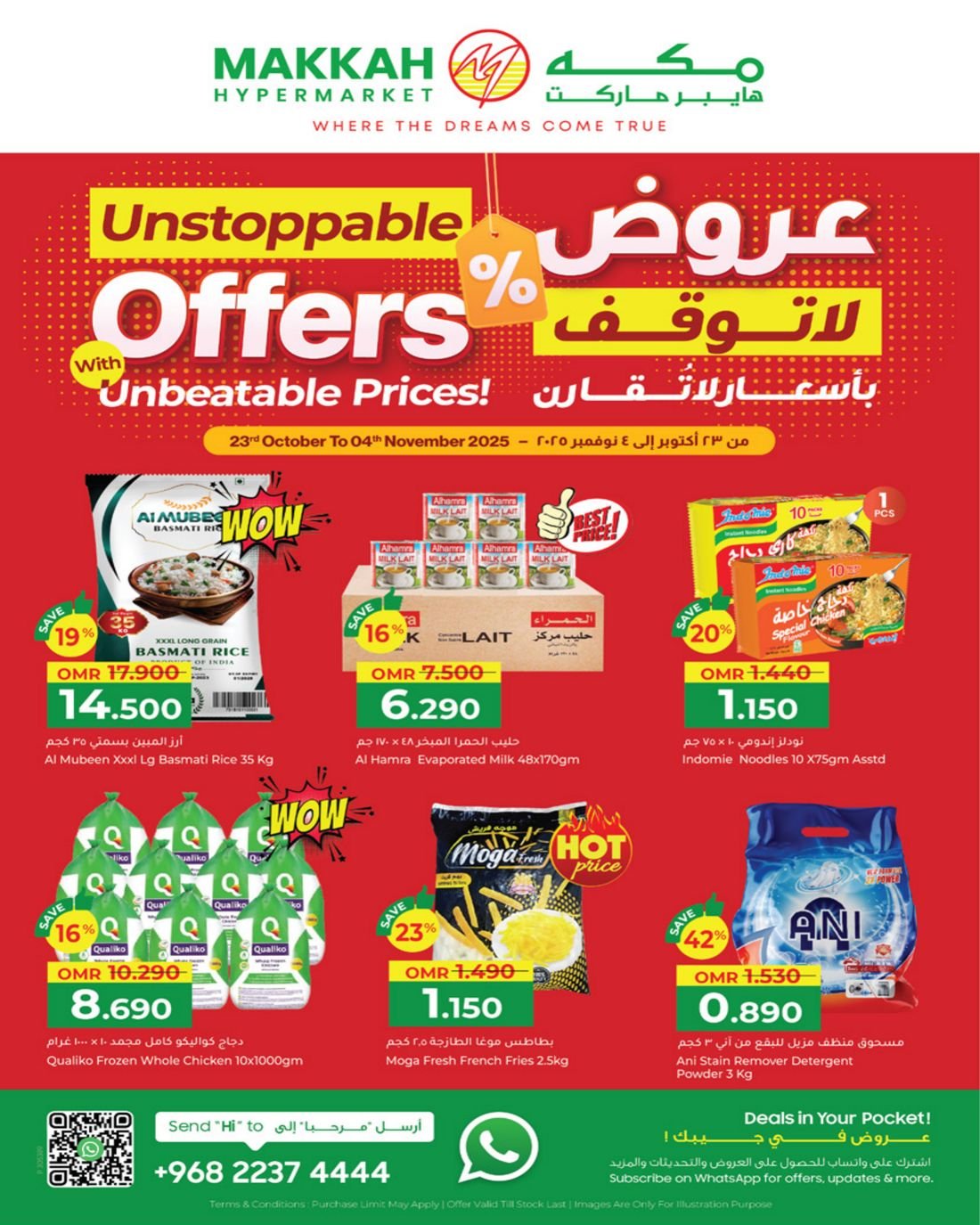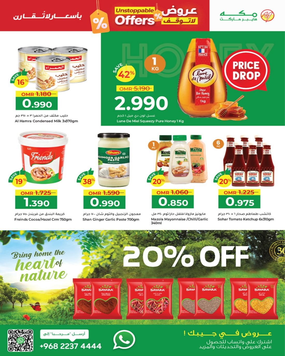 عروض الغذائيات ولوازم المنزل من مكة هايبر ماركت ، تشمل العروض تخفيضات على تشكيلة واسعة على المواد الغذائية والاجهزة الالكترونية والملابس الجاهزة إضافة إلى بعض حاجيات المنزل والمزيد من المنتجات وبتنزيلات منافسة .