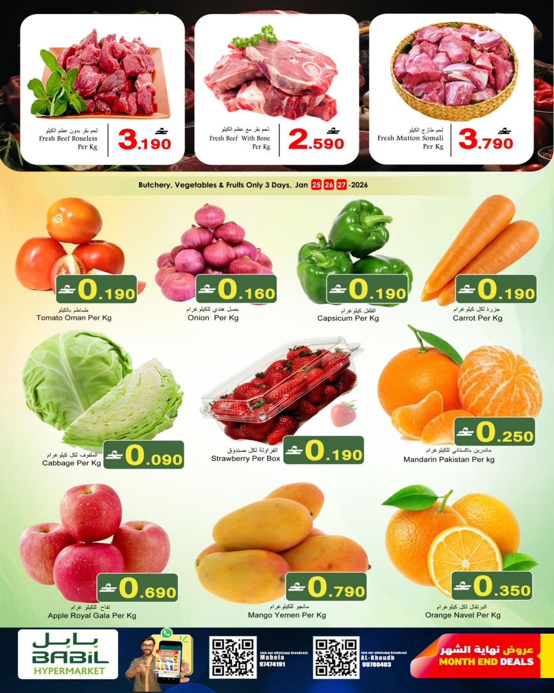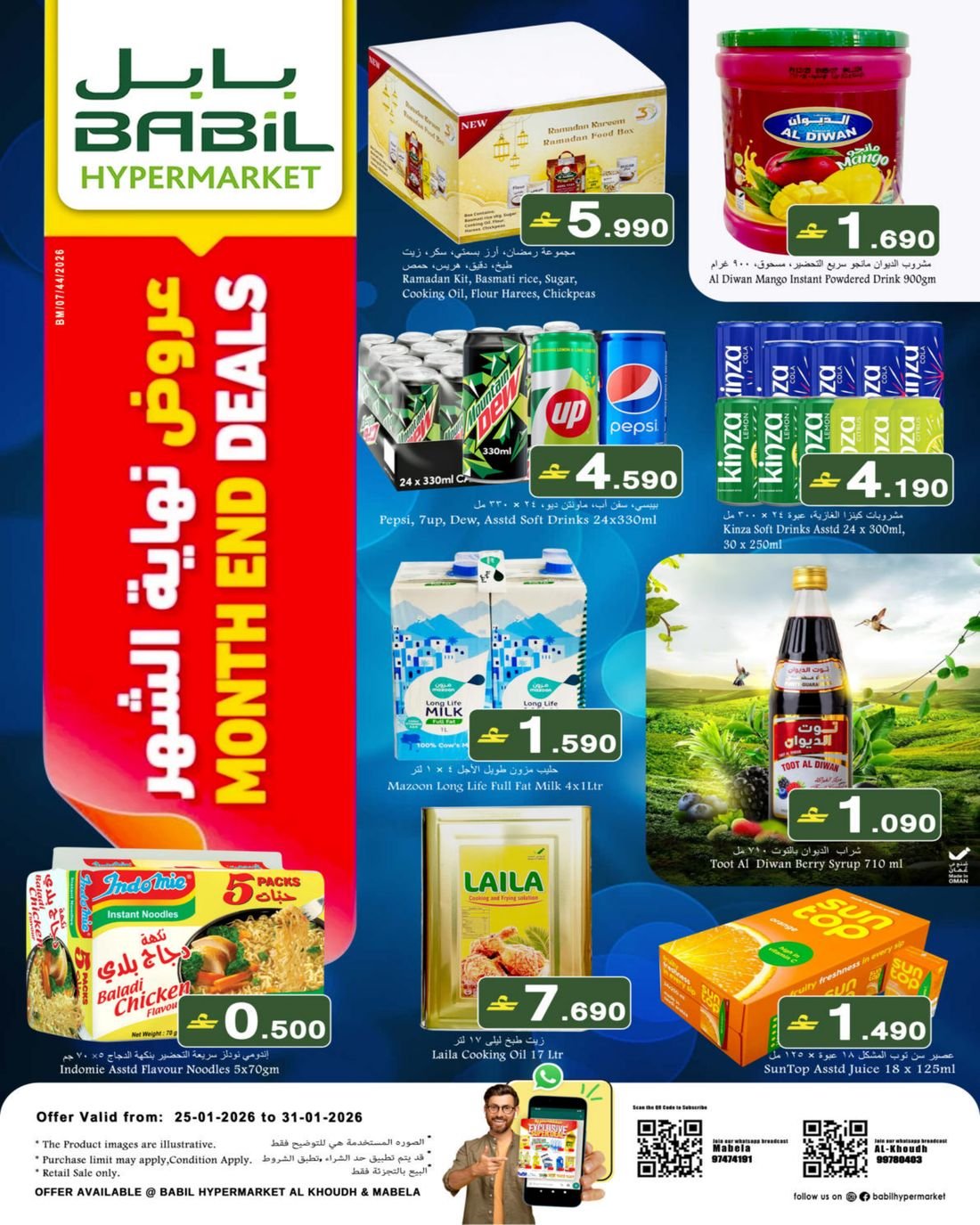 العروض متوفرة في بابل هايبرماركت فرع الخوض والمعبيلة.