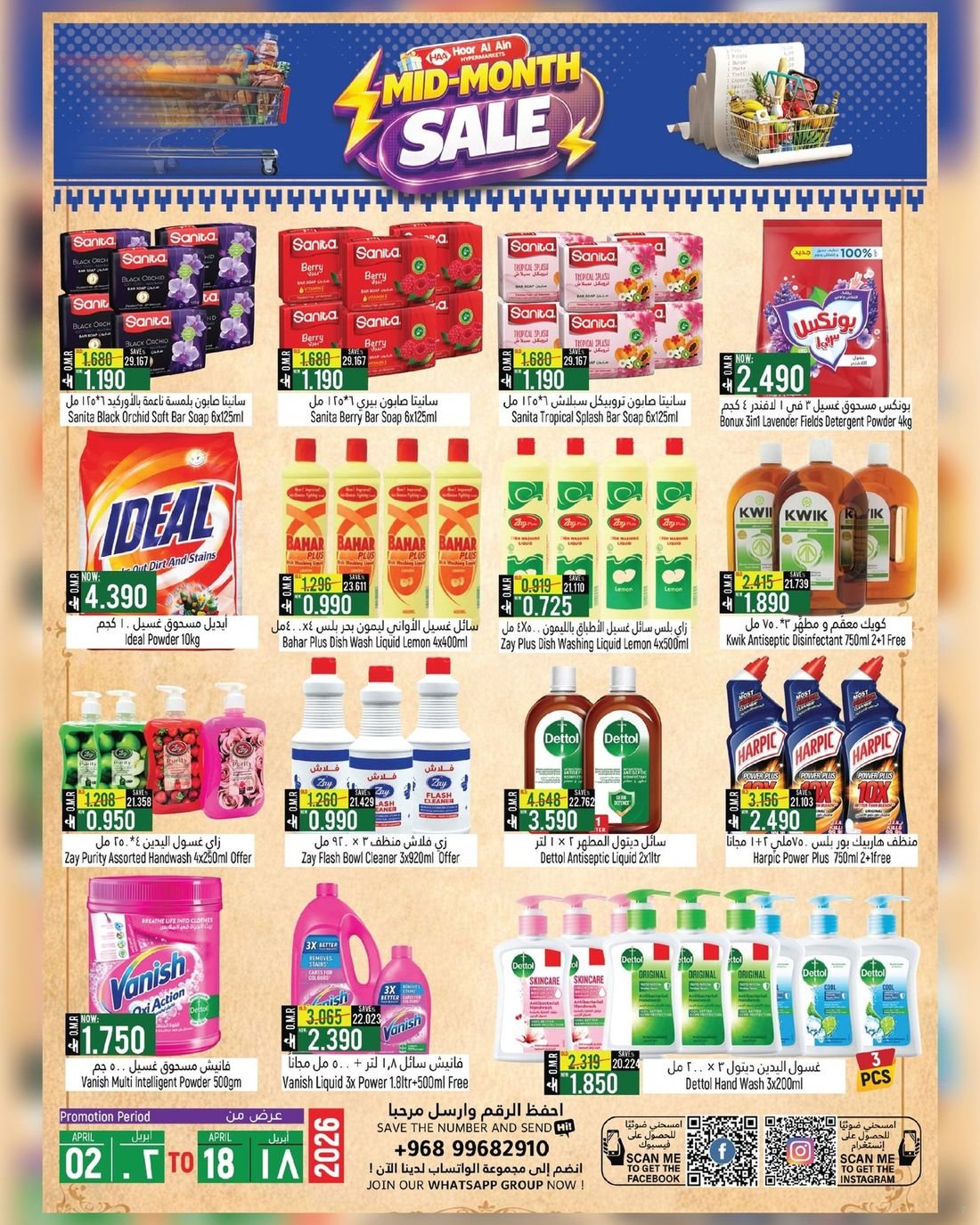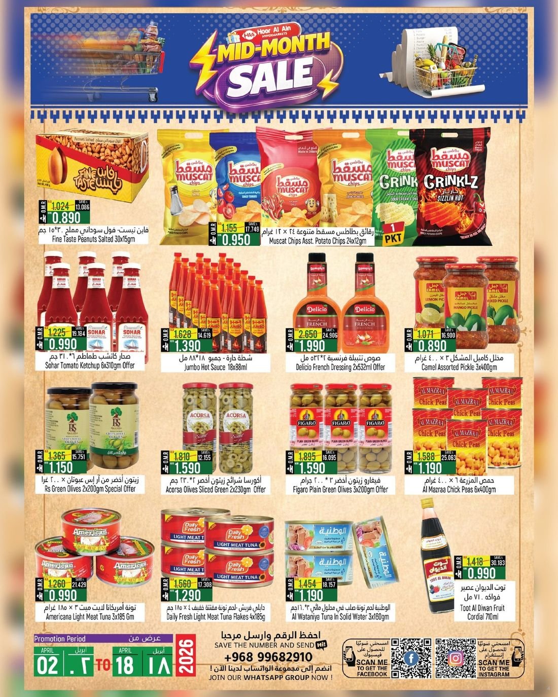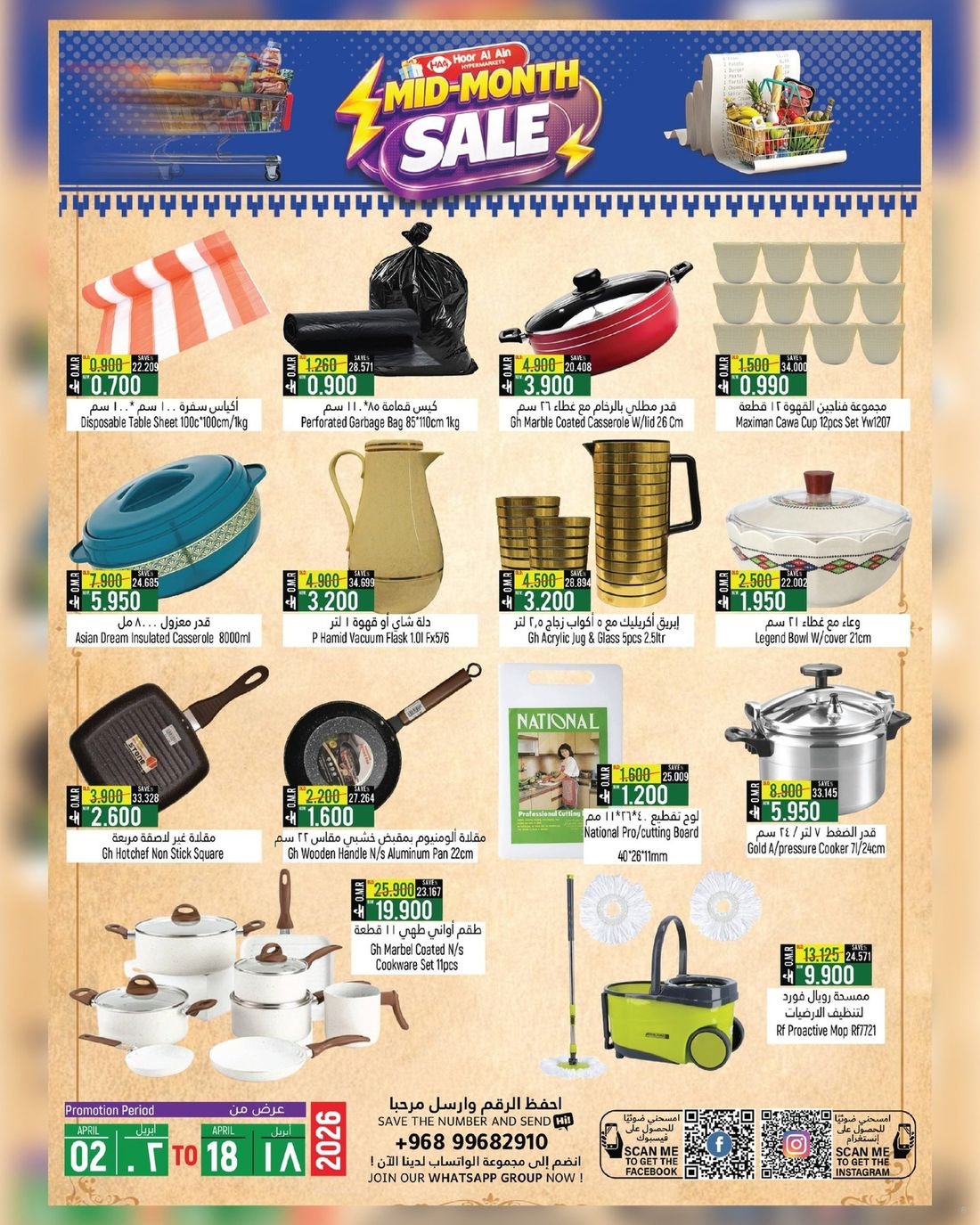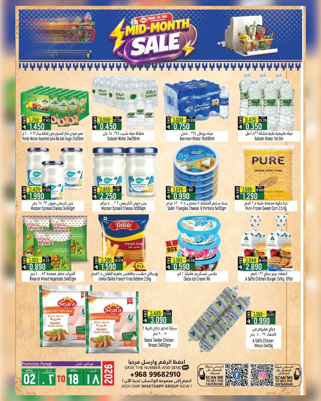 عروض الغذائيات ولوازم المنزل في ولاية الرستاق من حور العين هايبر ماركت عمان ، تخفيضات كبرى تشمل المنتجات الغذائية المتنوعة إضافة الى بعض لوازم وحاجيات المنزل وبإسعار مخفضة ، زوروا الان حور العين هايبرماركت واستفيدوا من العروض القيمة .